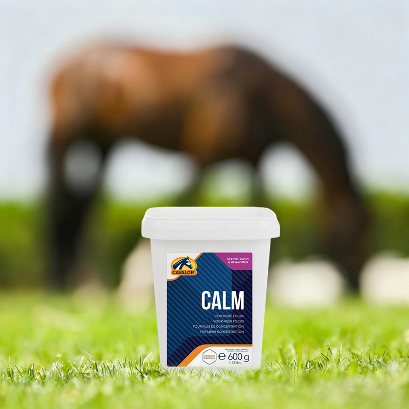如果马日常就比较紧张,并且在比赛中变的更紧张,那请您在家里用 Cavalor Calm 安定镁元素。比赛的时候切换到 CavalorSoZen 植物配方安定放松 和 Cavalor Take It Easy (Forte) 强效安定放松膏剂参加比赛。